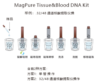 | MagPure Tissue&Blood DNA LQ Kit 為干血片、拭子、抗凝血液、血清、血漿、唾液、 培養(yǎng)細(xì)胞、少量的動物組織和石蠟切片等生物樣品 DNA 提取提供了一個簡單快速的解 決方案。試劑盒基于超順磁性的磁性粒子純化技術(shù),提取過程中無需使用有毒的酚氯 仿抽提,也無需進(jìn)行耗時的醇類沉淀,整個提取過程只需 60 分鐘。該方法純化的 DNA 包括基因組 DNA,線粒體 DNA,病毒 DNA(如乙肝),或其它寄生微生物的 DNA。得 到的 DNA 可直接用于 PCR,芯片分析、二代測序、病毒 DNA 檢測等實驗。 |