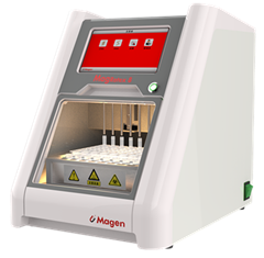 MagRotex 8中體積核酸提取儀采用革新的旋轉(zhuǎn)式磁珠重懸浮技術(shù)及單樣本提取耗材設(shè)計,不僅可滿足大樣本量(起始樣本 體積可達(dá)到1000ul)的核酸提取應(yīng)用,還可根據(jù)樣本數(shù)量來選擇耗材數(shù)量,保證樣本處理過程獨立性的同時避免耗材浪費, 實現(xiàn)耗材試劑零損耗,一次可快速地完成1-8個不同樣本核酸提取和純化。 用戶可通過儀器的大尺寸觸摸屏進(jìn)行簡單操 作即可啟動實驗,實驗結(jié)束后,提取的核酸儲存在獨立的洗脫管中,洗脫管可取出加蓋冷凍保存或后續(xù)檢測使用。美基公司為MagRotex 8中體積簡便核酸提取儀開發(fā)了大量的配套試劑盒,產(chǎn)品包括質(zhì)粒提取、凝膠/產(chǎn)物DNA純化、血液組織DNA小中量提取、環(huán)境DNA小中量提取,植物DNA中量提取,以及總RNA提取,基本包括了科研項目中各種生物樣品。