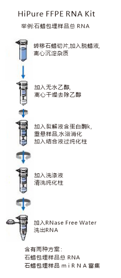 Kit是專門為石蠟包埋組織小分子RNA抽提而設(shè)計的。試劑盒基于硅膠柱純化技術(shù),提取過程中無需使用有毒的酚氯仿抽提,也無需進行耗時的醇類沉淀,整個提取過程只需60分鐘。純化的RNA可直接用于RT-PCR、Northern