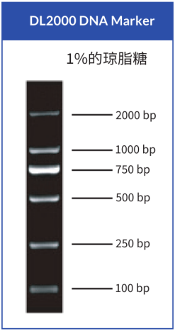 2000bp,1000bp,750bp,500bp,250bp,100bp共6條雙鏈DNA組成